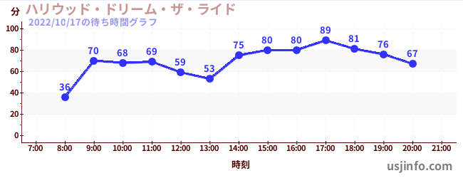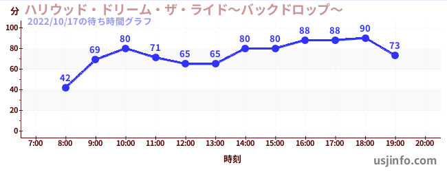 • ハリウッド・ドリーム・ザ・ライド〜バックドロップ〜$B$N(B2022年10月17日の待ち時間