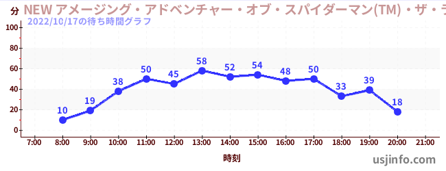 • NEW アメージング・アドベンチャー・オブ・スパイダーマン(TM)・ザ・ライド 4K3D$B$N(B2022年10月17日の待ち時間