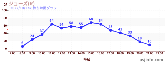 • ジョーズ(R)$B$N(B2022年10月17日の待ち時間