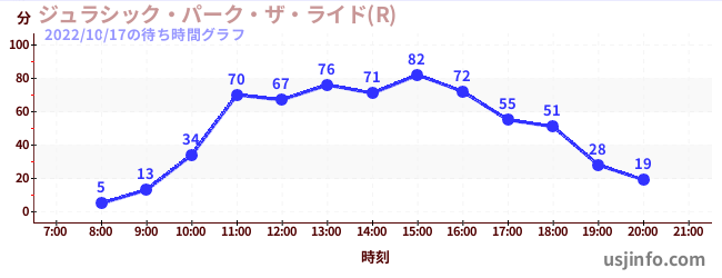 • ジュラシック・パーク・ザ・ライド(R)$B$N(B2022年10月17日の待ち時間
