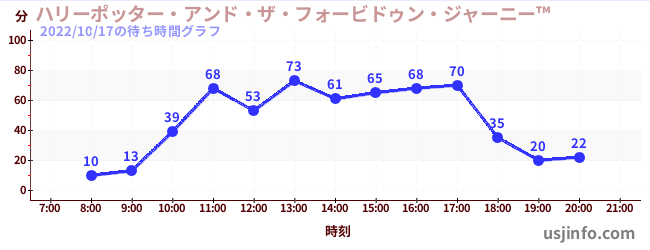 • ハリーポッター・アンド・ザ・フォービドゥン・ジャーニー™$B$N(B2022年10月17日の待ち時間