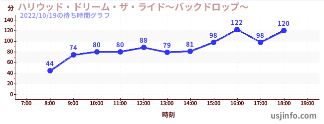 • ハリウッド・ドリーム・ザ・ライド〜バックドロップ〜$B$N(B2022年10月19日の待ち時間