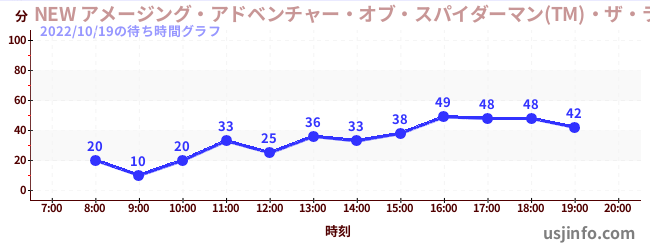 • NEW アメージング・アドベンチャー・オブ・スパイダーマン(TM)・ザ・ライド 4K3D$B$N(B2022年10月19日の待ち時間