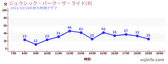 • ジュラシック・パーク・ザ・ライド(R)$B$N(B2022年10月19日の待ち時間