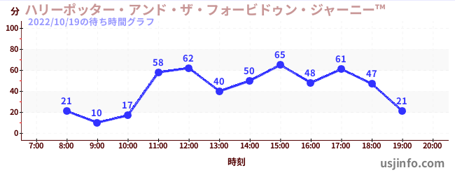 • ハリーポッター・アンド・ザ・フォービドゥン・ジャーニー™$B$N(B2022年10月19日の待ち時間