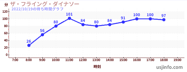 • ザ・フライング・ダイナソー$B$N(B2022年10月19日の待ち時間