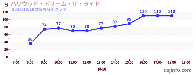 • ハリウッド・ドリーム・ザ・ライド$B$N(B2022年10月19日の待ち時間