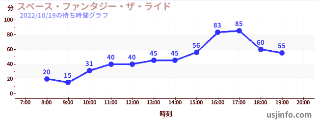 • スペース・ファンタジー・ザ・ライド$B$N(B2022年10月19日の待ち時間