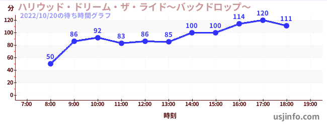 • ハリウッド・ドリーム・ザ・ライド〜バックドロップ〜$B$N(B2022年10月20日の待ち時間