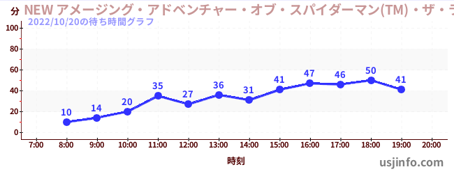 • NEW アメージング・アドベンチャー・オブ・スパイダーマン(TM)・ザ・ライド 4K3D$B$N(B2022年10月20日の待ち時間