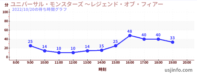 • ユニバーサル・モンスターズ ~レジェンド・オブ・フィアー$B$N(B2022年10月20日の待ち時間