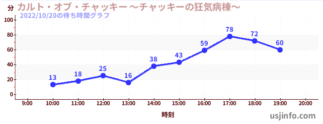• カルト・オブ・チャッキー ~チャッキーの狂気病棟~$B$N(B2022年10月20日の待ち時間
