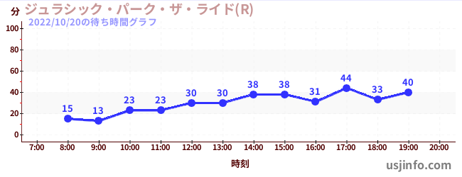 • ジュラシック・パーク・ザ・ライド(R)$B$N(B2022年10月20日の待ち時間