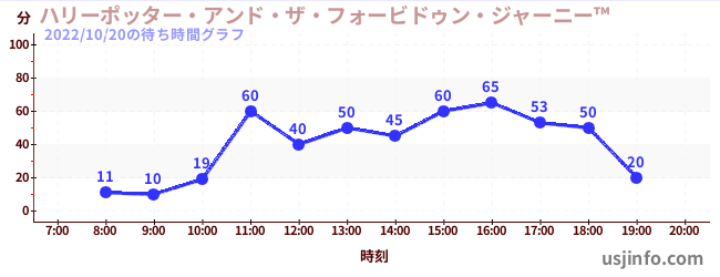 • ハリーポッター・アンド・ザ・フォービドゥン・ジャーニー™$B$N(B2022年10月20日の待ち時間