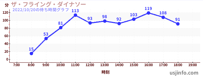 • ザ・フライング・ダイナソー$B$N(B2022年10月20日の待ち時間
