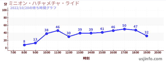 • ミニオン・ハチャメチャ・ライド$B$N(B2022年10月20日の待ち時間