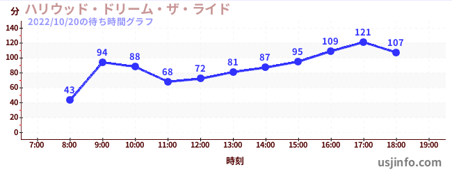 • ハリウッド・ドリーム・ザ・ライド$B$N(B2022年10月20日の待ち時間