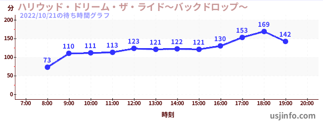 • ハリウッド・ドリーム・ザ・ライド〜バックドロップ〜$B$N(B2022年10月21日の待ち時間