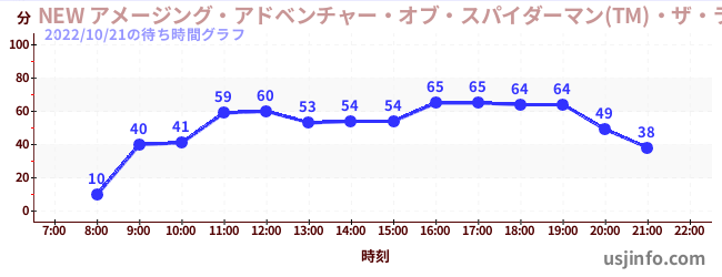 • NEW アメージング・アドベンチャー・オブ・スパイダーマン(TM)・ザ・ライド 4K3D$B$N(B2022年10月21日の待ち時間