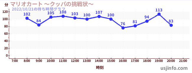 • マリオカート ~クッパの挑戦状~$B$N(B2022年10月21日の待ち時間