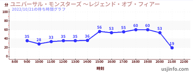 • ユニバーサル・モンスターズ ~レジェンド・オブ・フィアー$B$N(B2022年10月21日の待ち時間