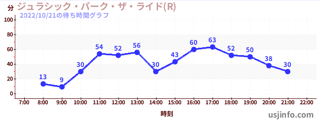 • ジュラシック・パーク・ザ・ライド(R)$B$N(B2022年10月21日の待ち時間