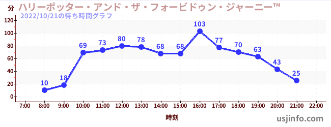 • ハリーポッター・アンド・ザ・フォービドゥン・ジャーニー™$B$N(B2022年10月21日の待ち時間