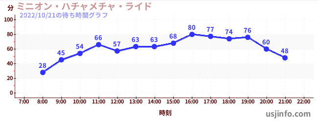 • ミニオン・ハチャメチャ・ライド$B$N(B2022年10月21日の待ち時間