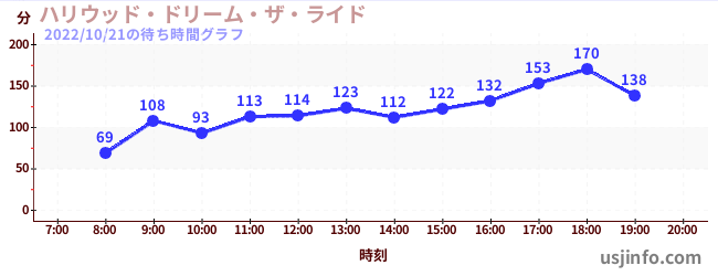 • ハリウッド・ドリーム・ザ・ライド$B$N(B2022年10月21日の待ち時間