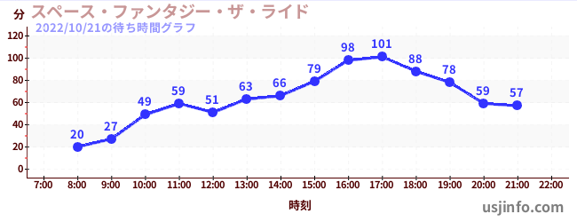 • スペース・ファンタジー・ザ・ライド$B$N(B2022年10月21日の待ち時間