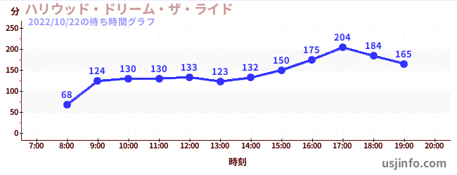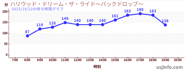 • ハリウッド・ドリーム・ザ・ライド〜バックドロップ〜$B$N(B2022年10月22日の待ち時間