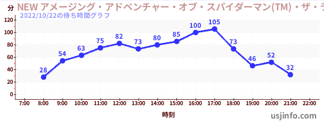 • NEW アメージング・アドベンチャー・オブ・スパイダーマン(TM)・ザ・ライド 4K3D$B$N(B2022年10月22日の待ち時間