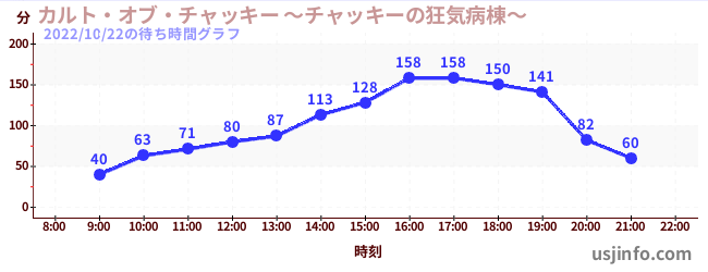 • カルト・オブ・チャッキー ~チャッキーの狂気病棟~$B$N(B2022年10月22日の待ち時間