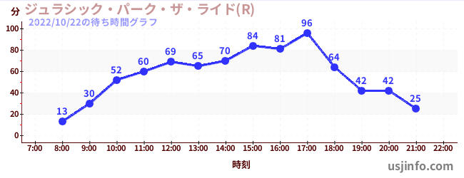 • ジュラシック・パーク・ザ・ライド(R)$B$N(B2022年10月22日の待ち時間