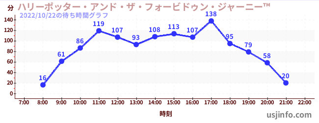 • ハリーポッター・アンド・ザ・フォービドゥン・ジャーニー™$B$N(B2022年10月22日の待ち時間