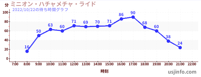 • ミニオン・ハチャメチャ・ライド$B$N(B2022年10月22日の待ち時間