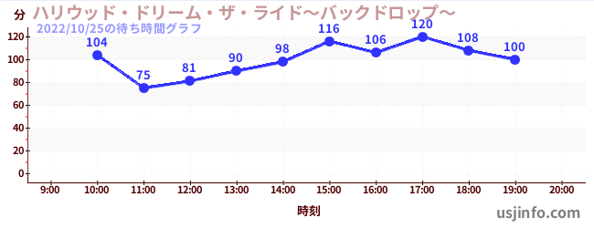 • ハリウッド・ドリーム・ザ・ライド〜バックドロップ〜$B$N(B2022年10月25日の待ち時間