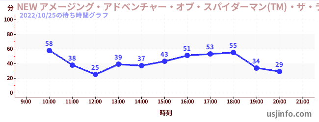 • NEW アメージング・アドベンチャー・オブ・スパイダーマン(TM)・ザ・ライド 4K3D$B$N(B2022年10月25日の待ち時間