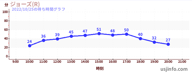 • ジョーズ(R)$B$N(B2022年10月25日の待ち時間