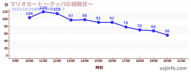 • マリオカート ~クッパの挑戦状~$B$N(B2022年10月25日の待ち時間