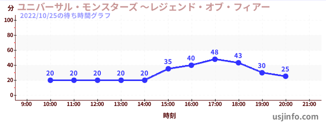 • ユニバーサル・モンスターズ ~レジェンド・オブ・フィアー$B$N(B2022年10月25日の待ち時間