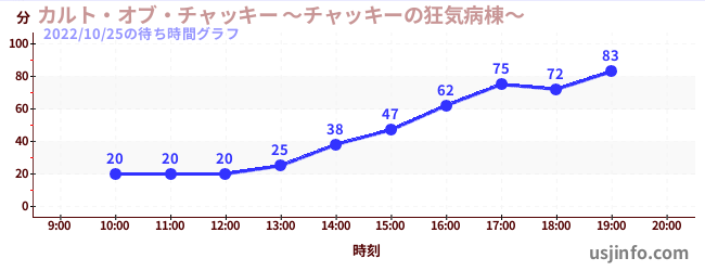 • カルト・オブ・チャッキー ~チャッキーの狂気病棟~$B$N(B2022年10月25日の待ち時間