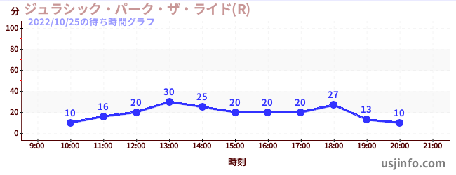 • ジュラシック・パーク・ザ・ライド(R)$B$N(B2022年10月25日の待ち時間