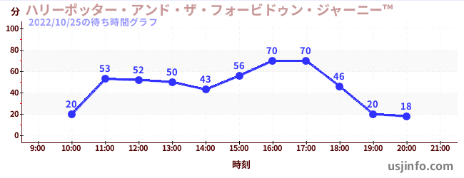 • ハリーポッター・アンド・ザ・フォービドゥン・ジャーニー™$B$N(B2022年10月25日の待ち時間