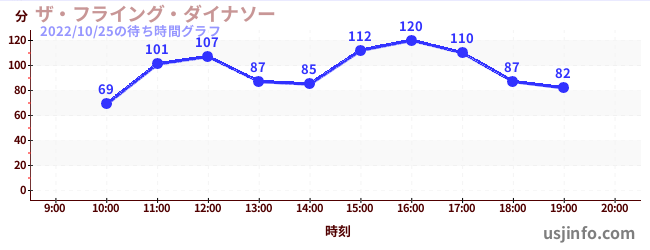 • ザ・フライング・ダイナソー$B$N(B2022年10月25日の待ち時間