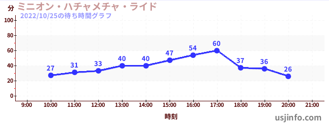 • ミニオン・ハチャメチャ・ライド$B$N(B2022年10月25日の待ち時間