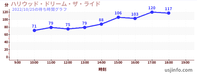 • ハリウッド・ドリーム・ザ・ライド$B$N(B2022年10月25日の待ち時間