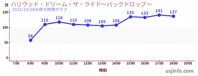 • ハリウッド・ドリーム・ザ・ライド〜バックドロップ〜$B$N(B2022年10月28日の待ち時間
