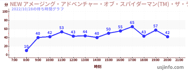 • NEW アメージング・アドベンチャー・オブ・スパイダーマン(TM)・ザ・ライド 4K3D$B$N(B2022年10月28日の待ち時間