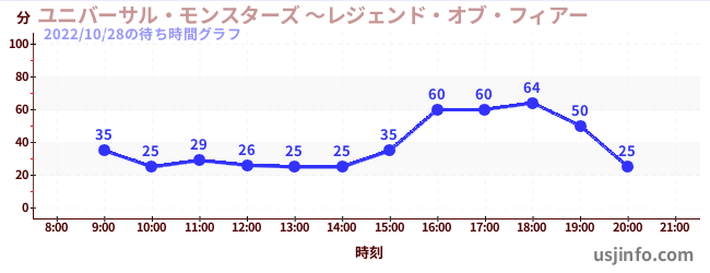 • ユニバーサル・モンスターズ ~レジェンド・オブ・フィアー$B$N(B2022年10月28日の待ち時間